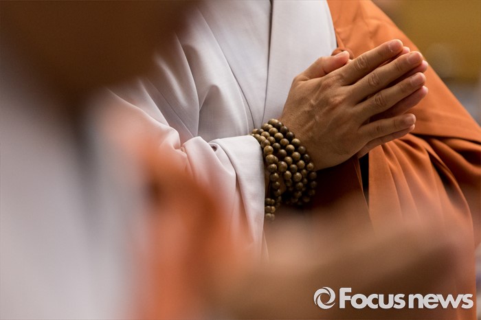 (서울=포커스뉴스) 21일 오전 서울 종로구 한국불교역사문화기념관에서 열린 제206회 조계종 중앙종회 임시회의에서 중앙종회의원들이 삼귀의 반야심경을 봉독하고 있다. 이번 중앙종회 임시회에서는 총무원장 선출제도를 집중적으로 다룰 예정이다.