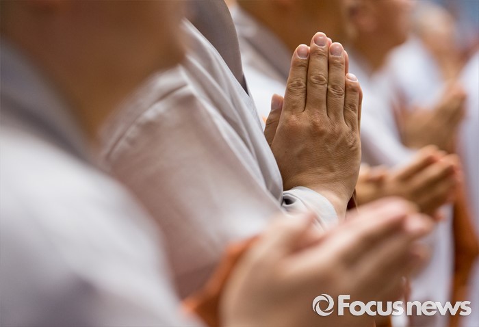 (서울=포커스뉴스) 21일 오전 서울 종로구 한국불교역사문화기념관에서 열린 제206회 조계종 중앙종회 임시회의에서 중앙종회의원들이 삼귀의 반야심경을 봉독하고 있다. 이번 중앙종회 임시회에서는 총무원장 선출제도를 집중적으로 다룰 예정이다.