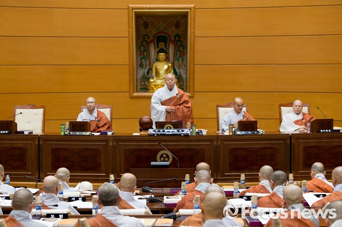 (서울=포커스뉴스) 21일 오전 서울 종로구 한국불교역사문화기념관에서 열린 제206회 조계종 중앙종회 임시회의에서 조계종 중앙종회의장 성문 스님이 개회사를 하고 있다. 이번 중앙종회 임시회에서는 총무원장 선출제도를 집중적으로 다룰 예정이다.