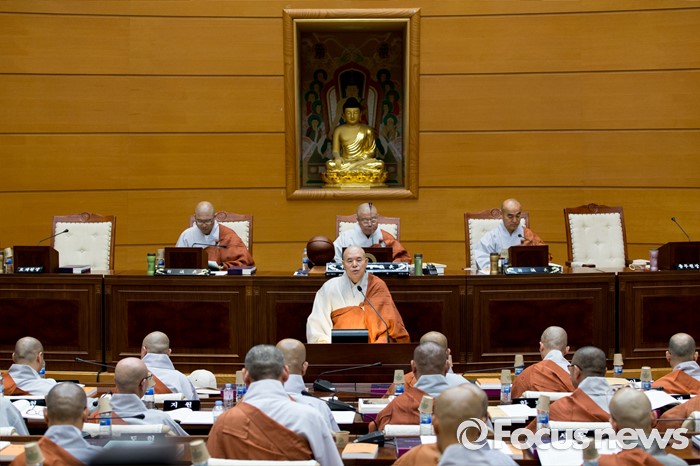 (서울=포커스뉴스) 21일 오전 서울 종로구 한국불교역사문화기념관에서 열린 제206회 조계종 중앙종회 임시회의에서 조계종 총무원장 자승 스님이 인사말을 하고 있다. 이번 중앙종회 임시회에서는 총무원장 선출제도를 집중적으로 다룰 예정이다.