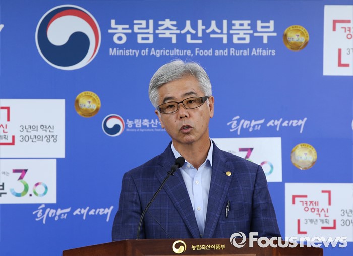(세종=포커스뉴스) 김홍길 전국 한우협회장이 21일 오전 세종시 정부세종청사 농림축산식품부 기자실에서 한우가격 상승에 따른 소비자 부담을 줄이기 위해 24일부터 10일간 한우고기를 할인 판매한다고 밝히고 있다. 농축협 하나로 마트와 한우협회 영농조합법인 등 전국 3백개 매장에서 불고기와 국거리용 1등급 기준으로 30% 할인 판매할 예정이다.
