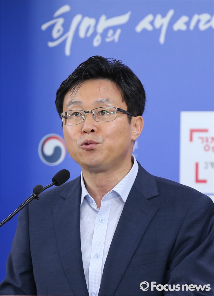(세종=포커스뉴스) 이재욱 국립농산물품질관리원장이 21일 오전 세종시정부세종청사 농림축산식품부 기자실에서 전국도매시장을 대상으로 기획단속을 실시해포대갈이를 하던 40개 업체를 적발했다고 밝히고 있다.