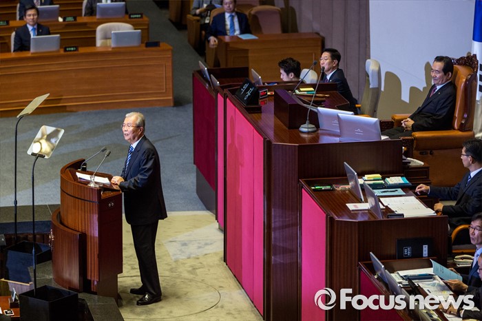 (서울=포커스뉴스) 김종인 더불어민주당 비상대책위 대표가 21일 오전 서울 여의도 국회에서 열린 본회의에 참석해 교섭단체대표 연설 하고 있다.