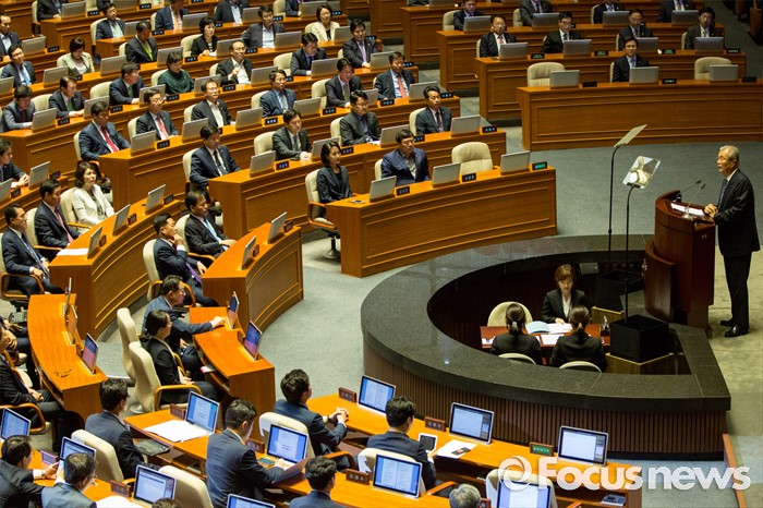 (서울=포커스뉴스) 김종인 더불어민주당 비상대책위 대표가 21일 오전 서울 여의도 국회에서 열린 본회의에 참석해 교섭단체대표 연설 하고 있다.