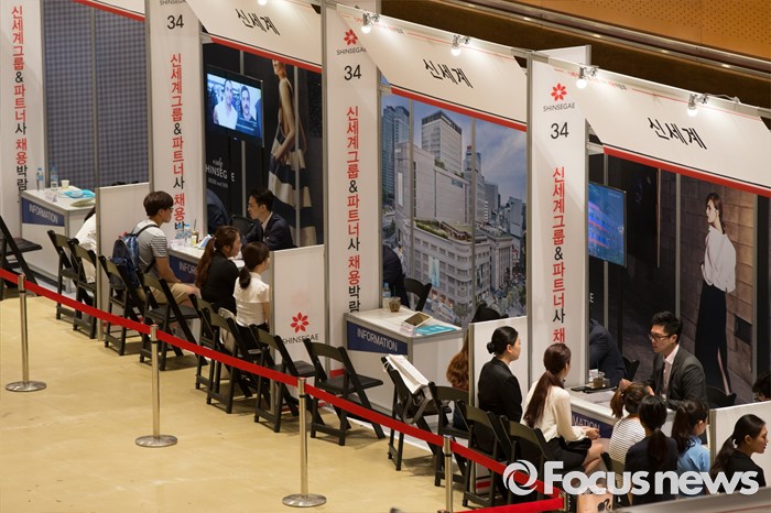 (서울=포커스뉴스) 21일 오후 서울 강남구 코엑스 D2홀에서 열린 신세계그룹&파트너사 채용박람회에서 구직자들이 희망 부스를 둘러보고 있다.