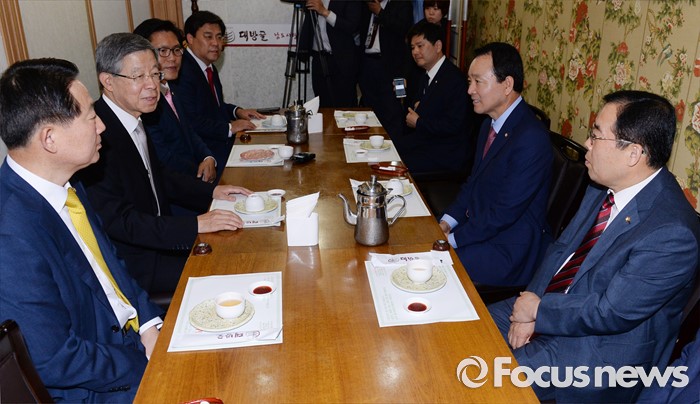 (서울=포커스뉴스) 김희옥 새누리당 혁신비대위원장이 21일 오후 서울 여의도 한 식당에서 초선 의원들과의 오찬에 앞서 인사말을 하고 있다.