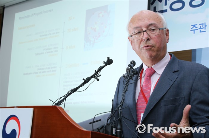 (세종=포커스뉴스) 장 마리 슈발리에 프랑스 파리공항공단자회사 ADPi 수석엔지니어가 21일 오후 세종시 정부세종청사 국토교통부 브리핑실에서 열린 동남권 신공항 타당성 검토 연구 최종 보고회에서 입지선정 결과를 발표하고 있다.