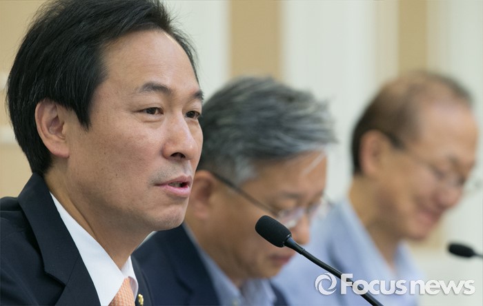 (서울=포커스뉴스) 22일 오전 서울 여의도 국회 귀빈식당에서 열린 더불어민주당 국민연금기금 공공투자 추진 특위 2차 회의에 참석한 우상호 원내대표가 인사말을 하고 있다.