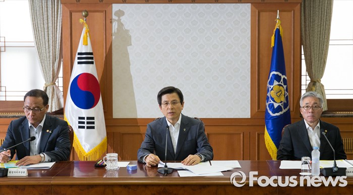 (서울=포커스뉴스) 22일 오전 서울 종로구 정부서울청사에서 열린 '신공항 후속조치 논의 관계장관회의에 참석한 황교안 국무총리가 모두발언하고 있다.