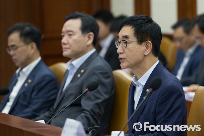 (서울=포커스뉴스) 22일 오전 서울 종로구 정부서울청사에서 열린 '제7차 사회관계장관회의'에 참석한 이준식 사회부총리 겸 교육부 장관이 모두발언하고 있다.