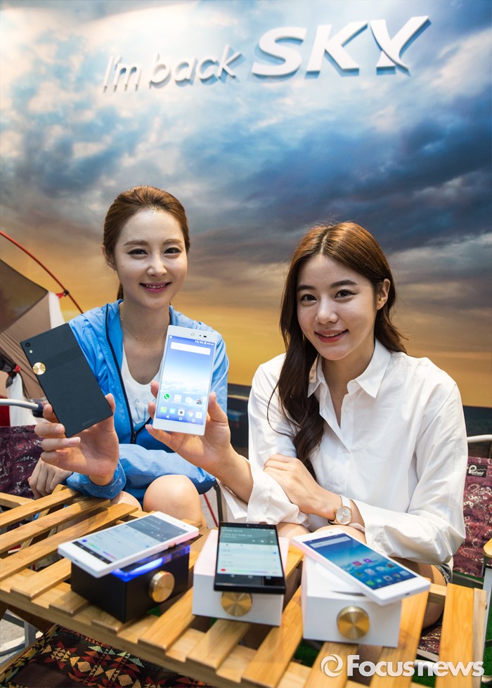 (서울=포커스뉴스) 22일 오전 서울 마포구 팬택 상암사옥에서 열린 'SKY, IM-100' 공개행사에 참여한 모델들이 신제품 선보이고 있다.