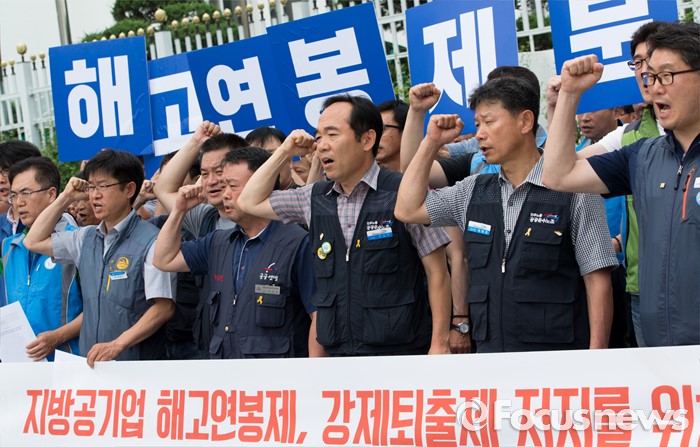 (서울=포커스뉴스) 22일 오전 서울 종로구 정부서울청사 앞에서 민주노총 공공운수노조와 한국노총 공공연맹, 지방공기업연맹이 공동투쟁위원회 출범 및 공동투쟁 선포 기자회견을 하고 있다.