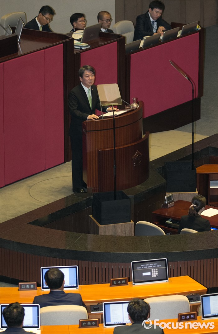 (서울=포커스뉴스) 22일 오전 서울 여의도 국회에서 열린 343회 국회(임시회) 5차 본회의에 참석한 안철수 국민의당 상임공동대표의 교섭단체 대표연설을 하고 있다. 검찰 소환을 하루 앞둔 같은 당 김수민 의원은 이날 본회의에 불참했다.
