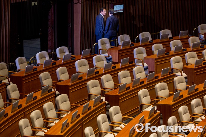 (서울=포커스뉴스) 정진석 새누리당 원내대표와 김무성 새누리당 전 대표가 22일 오전 서울 여의도 국회에서 열린 본회의에 참석해 대화 하고 있다.