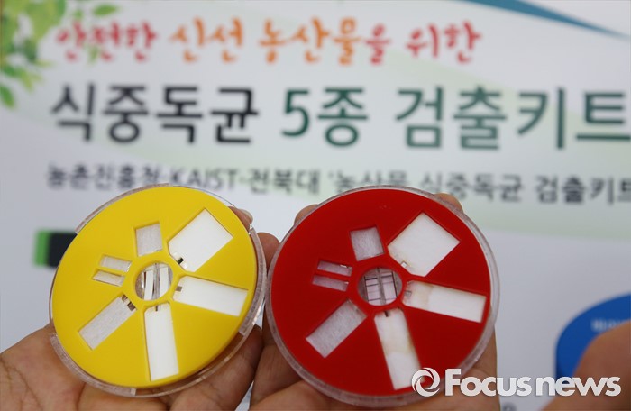 식중독균 검출키트는 농진청과 KAIST, 전북대가 공동으로 개발, 식중독균 5종을 1시간 안에 동시에 검출 할 수 있으며, 다이얼 모양의 종이 기반 감지기에 시료를 넣고 돌리면 중앙의 원 안에 청색 선이 보이면서 식중독균을 확인할 수 있다.