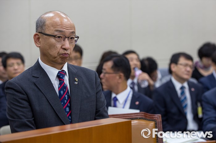 (서울=포커스뉴스) 문형표 국민연금공단 이사장이 22일 오후 서울 여의도 국회에서 열린 '보건복지위원회 전체회의'에 참석해 김상희 국회 보건복지위원회 더불어민주당 위원의 의사 발언을 듣고 있다. 이날 김 위원은 문 이사장에게 2015년 메르스 사태 당시 보건복지부 장관을 중간에 사퇴한 이유로 국정감사 출석에 불응한 것과 메르스 사태 미수습에 대해 사과할 것을 요구 했다.