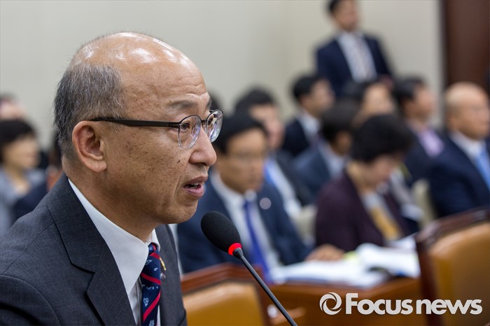 (서울=포커스뉴스) 문형표 국민연금공단 이사장이 22일 오후 서울 여의도 국회에서 열린 '보건복지위원회 전체회의'에 참석해 2015년 메르스 사태 당시 보건복지부 장관을 중간에 사퇴한 이유로 국정감사 출석에 불응한 것과 메르스 사태 미수습에 대해 사과 하고 있다.