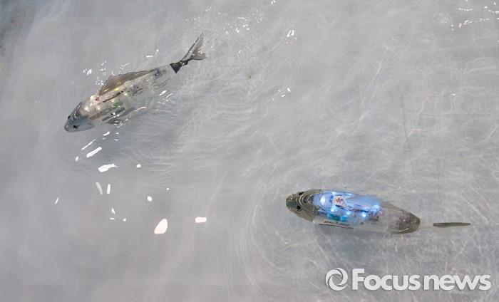 (고양=포커스뉴스) 22일 오후 경기 고양시 킨텍스 7홀에서 열린 2016 로보유니버스 & VR 서밋에서 물고기 로봇이 헤엄치고 있다.