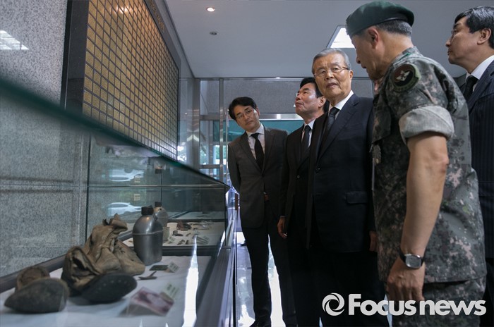 (서울=포커스뉴스) 김종인 더불어민주당 비대위 대표 등 의원들이 22일 오후 서울 동작구 국립서울현충원 내 국방부 유해발굴감식단을 방문해 신원확인 전사자 유품을 살펴보고 있다.