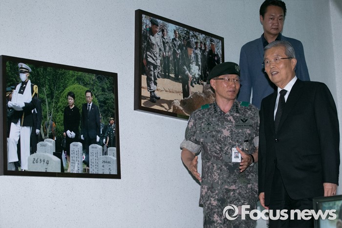 (서울=포커스뉴스) 김종인 더불어민주당 비대위 대표가 22일 오후 서울 동작구 국립서울현충원 내 국방부 유해발굴감식단을 방문해 이학기 단장의 설명을 들으며 이동하고 있다.