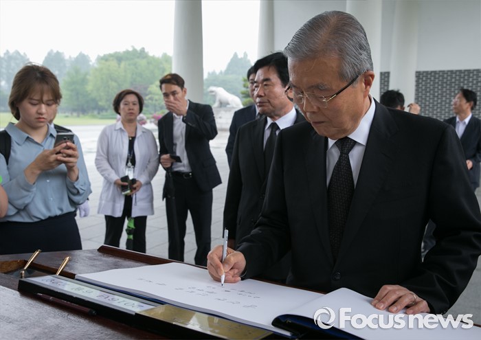 (서울=포커스뉴스) 김종인 더불어민주당 비대위 대표가 22일 오후 서울 동작구 국립서울현충원 내 국방부 유해발굴감식단 방문에 앞서 현충탑 참배를 마친 뒤 방명록을 작성하고 있다.