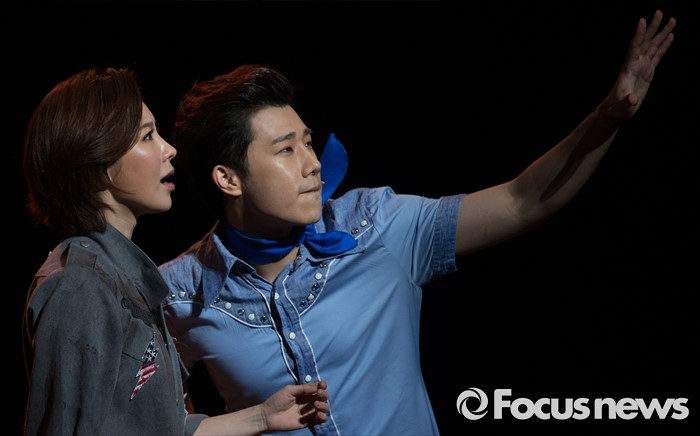 (서울=포커스뉴스) 22일 오후 서울 종로구 홍익대학고 대학로 아트센터에서 열린 뮤지컬 '올슉업' 프레스콜에 참여한 배우 제이민(왼쪽)과 김성규가 주요장면을 시연하고 있다.