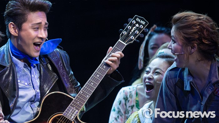 (서울=포커스뉴스) 22일 오후 서울 종로구 홍익대학고 대학로 아트센터에서 열린 뮤지컬 '올슉업' 프레스콜에 참여한 배우 최우혁(왼쪽)과 안시하가 주요장면을 시연하고 있다.