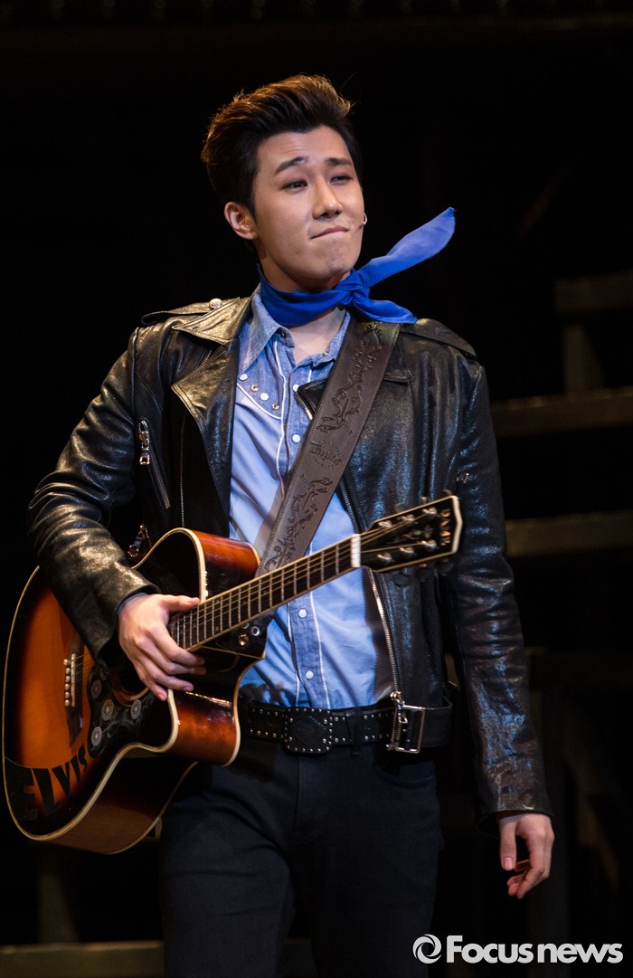 (서울=포커스뉴스) 22일 오후 서울 종로구 홍익대학고 대학로 아트센터에서 열린 뮤지컬 '올슉업' 프레스콜에 참여한 배우 김성규가 주요장면을 시연하고 있다.