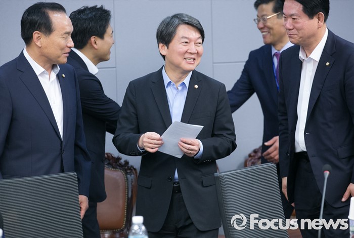(서울=포커스뉴스) 23일 오전 서울 여의도 국회에서 열린 국민의당 19차 정책역량강화 워크숍에 참석한 안철수 상임공동대표가 의원들과 인사하고 있다.