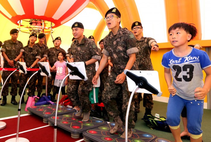 이번에는 호국보훈의 달과 6.25를 철원군 아이들과 인근 부대(육군 제6사단) 장병들을 위해 특별한 체험을 제공하고자 왔다. 북녘땅으로 더 나아가지 못하는 곳에서 통일을 염원한다는 의미도 담았다. 실제로 이날 20여명의 장병들이 티움모바일을 방문해 ICT 체험을 즐기고 아이들을 대상으로 안보교육도 진행했다. 우현섭 SK텔레콤 매니저는 “1000여명이 오는 곳도, 6명 정도 오는 곳도 있었지면 어디든지 갔다”며 “북한의 어린이들도 ICT 체험을 공유하길 바라는 마음에 최전방인 철원에 오게 됐다”고 설명했다. 이어 “개성에도 티움 모바일을 여는 날이 왔으면 좋겠다”고 덧붙였다.티움 모바일을 방문한 군인장병들과 철원초등학교 어린이들이 가상 달리기 시합을 펼치고 있다.<사진제공=SK텔레콤>육군 제 6사단 장병들이 3D기기를 착용하고 해저여행을 하는 '익스트림 서브마린'을 체험하고 있다.<사진제공=SK텔레콤>철원초등학교 운동장에 마련된 이동형 체험관 티움 모바일.<사진제공=SK텔레콤>