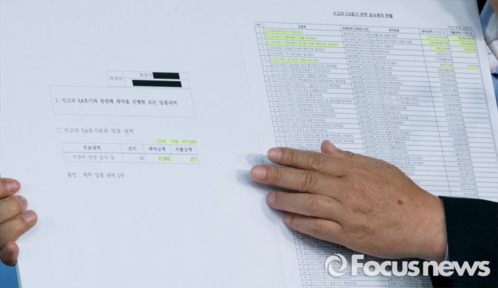 (서울=포커스뉴스) 국회 산업통상자원위원회 소속 우원식 더불어민주당 의원이 23일 오전 서울 여의도 국회 정론관에서 신고리 5, 6호기 건설허가 전 공사가 진행되고 있다는 내용의 자료를 들고 기자회견을 하고 있다.