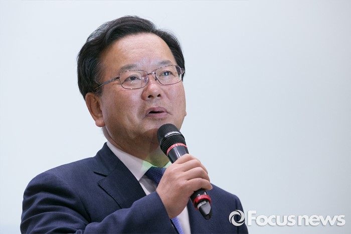 (서울=포커스뉴스) 전당대회 불출마를 선언하고 대권 도전을 시사한 김부겸 더불어민주당 의원이 23일 오전 서울 여의도 국회 의원회관에서 열린 대학생리더십 아카데미에 참석해 특강을 하고 있다.