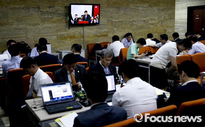 (서울=포커스뉴스) 23일 오전 서울 여의도 국회 산업통상자원위원회 회의장 밖에서 부처 직원들이 업무자료를 준비하고 있다.