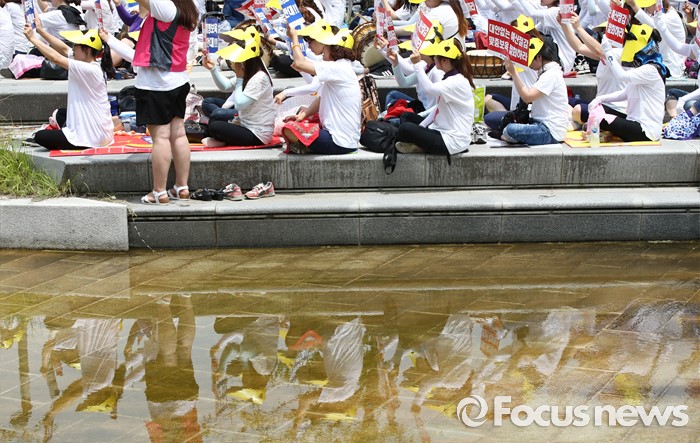 (세종=포커스뉴스) 23일 오전 세종시 정부세종청사 보건복지부 앞에서 충남민간어린이집연합회 회원들이 맞춤형보육 제도개선 및 시행연기 촉구 결의대회를 열고 있다.