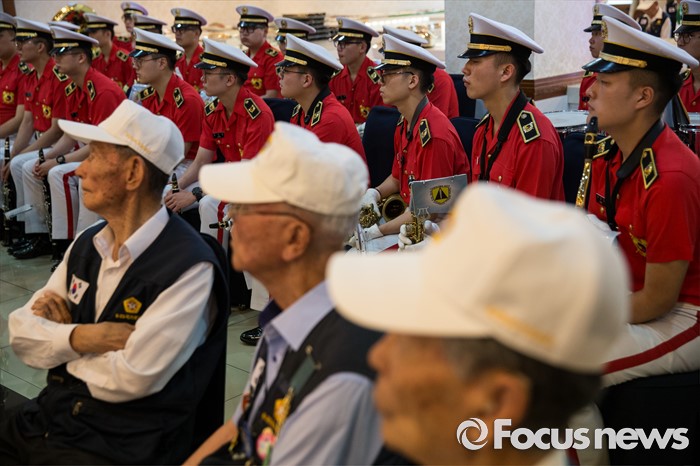 (서울=포커스뉴스) 23일 오전 서울 용산구 전쟁기념관 뮤지엄 웨딩홀에서 참전유공자들이 '6.25전쟁 참전유공자 위로연 및 호국영웅기장 전수식'에 참석하고 있다.