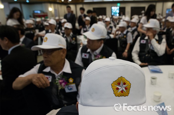 (서울=포커스뉴스) 23일 오전 서울 용산구 전쟁기념관 뮤지엄 웨딩홀에서 참전유공자들이 '6.25전쟁 참전유공자 위로연 및 호국영웅기장 전수식'에 참석하고 있다.