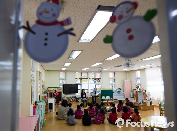 앞서 정부의 '맞춤형 보육' 정책에 반발해 한국민간어린이집연합회는 23일부터 일부 보육 교사를 출근시키지 않거나 단축운영하겠다는 방침을 밝힌 바 있다. 이 단체는 1만4000여 곳의 어린이집이 회원사로 소속돼 있어 보육대란 우려가 제기되기도 했다.(서울=포커스뉴스) 22일 오전 서울 용산구 일민유치원에서 어린이들이 수업을 받고 있다.이준식 사회부총리 겸 교육부 장관은 유치원, 어린이집 관계자 및 학부모와 간담회에서 누리과정 교육비 지원에 대한 정부의 입장을 설명했다. 2016.01.22 오장환 기자2016.06.21 김현지 기자