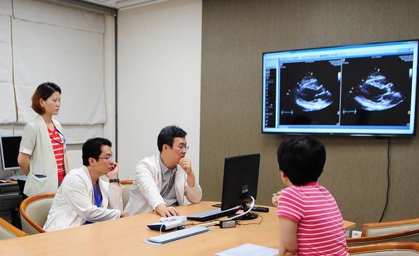 인공심장 클리닉 외과 파트 담당 심장외과 조양현 교수는 “인공심장이식의 비용이 비싸고 성공률이 낮다는 인식과 더불어 많은 분들이 잘 알지 못해서 국내에서는 치료건수가 현저히 낮은 편이다”며, “삼성서울병원은 이런 우려를 해소할 수 있는 임상적 경험과 인프라를 갖추고 있기 때문에 치료를 포기하지 말고 꼭 병원을 찾아주면 좋겠다”고 말했다.삼성서울병원 인공심장클리닉을 찾은 환자를 순환기내과, 심장외과, 인공심장 전문 코디네이터 등이 다같이 모여 진료를 하고 있다. <사진출처=삼성서울병원>