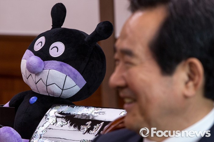 (서울=포커스뉴스) 23일 오후 서울 여의도 국회의장 집무실에 정세균 국회의장 지지자가 선물한 것으로 알려진 세균맨 인형이 놓여 있다.