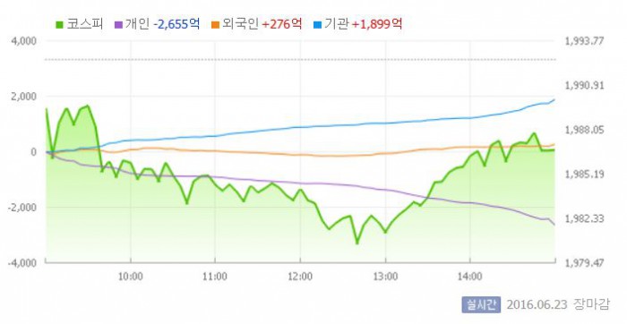 (서울=포커스뉴스) 코스피가 브렉시트(영국의 유럽연합 탈퇴) 국민투표를 앞둔 경계감에 하락 마감했다.