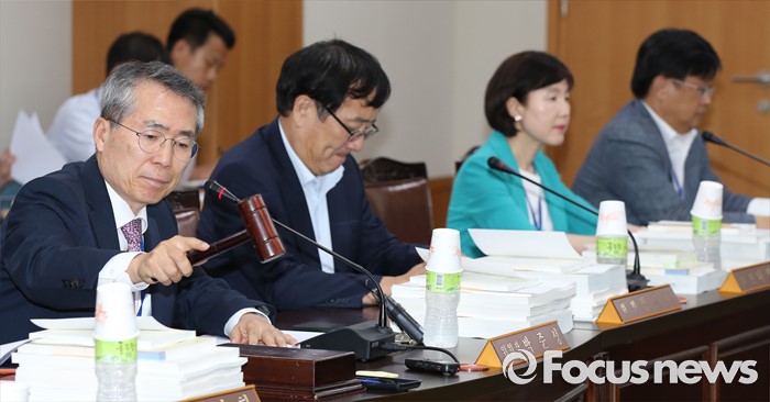 (세종=포커스뉴스) 박준성 최저임금위원회 위원장이 23일 오후 세종시 정부세종청사 고용노동부 최저임금위원회 전원회의실에서 5차 전원회의 시작을 알리는 의사봉을 두드리고 있다.