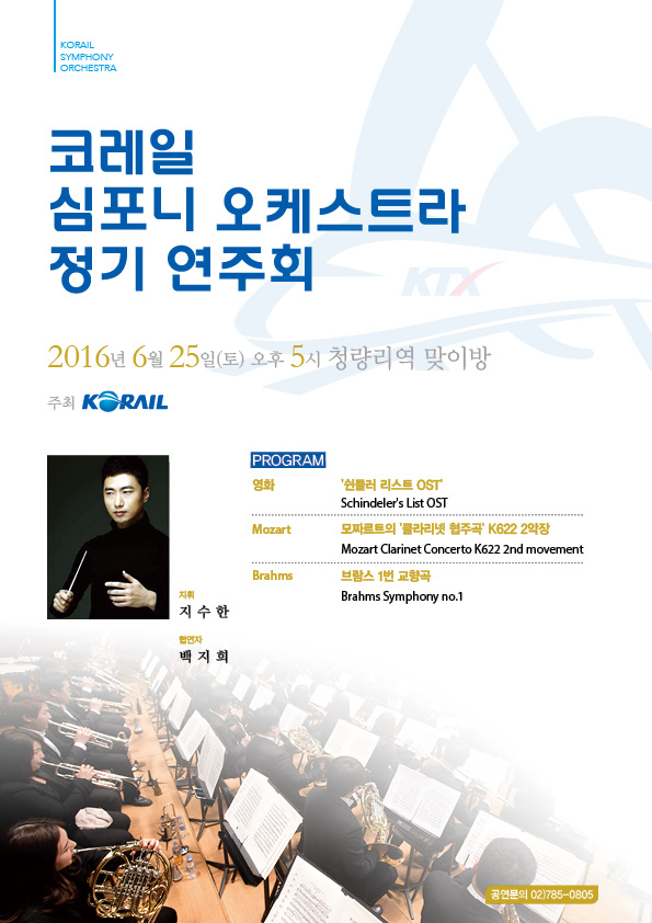 이번 공연에선 △윌리엄스의 쉰들러 리스트 OST(오리지널사운드트랙) △모차르트의 클라리넷 협주곡 2악장 △브람스 교향곡 1번 등 많은 이들에게 친근한 선율이 코레일심포니의 연주로 재탄생한다.