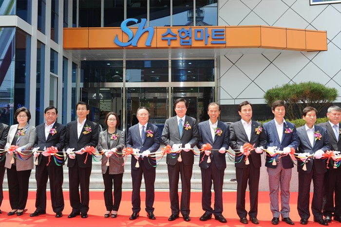 (춘천=포커스뉴스) 김영석 해양수산부장관이 23일 강원도 춘천시 효자동 수산물종합유통센터 준공식에 참석해 내빈들과 테이프커팅식을 하고 있다. <사진제공=해양수산부>