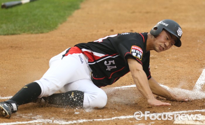 (서울=포커스뉴스) 23일 서울 잠실구장에서 열린 2016 프로야구 kt-두산 경기 2회초 1사 만루에서 kt 박기혁의 좌전 안타때 2루주자 전민수가 홈으로 뛰어들고 있다.