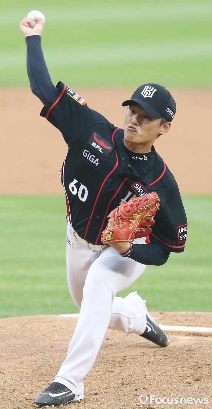 (서울=포커스뉴스) 23일 서울 잠실구장에서 열린 2016 프로야구 kt-두산 경기에서 1회말 kt 선발투수 주권이 투구하고 있다.