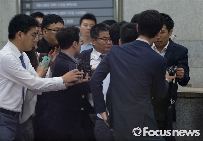 | △ 취재진 피해 검찰 들어서는 추선희 |