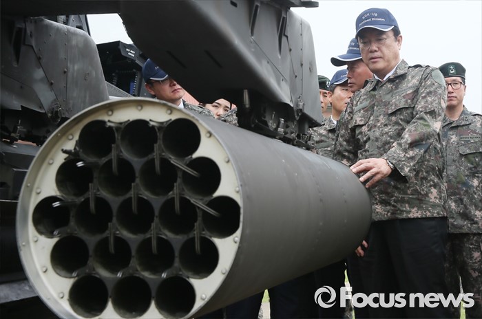 (의정부=포커스뉴스) 정진석 새누리당 원내대표, 김영우 국방위원장 등 의원들이 24일 오전 경기도 의정부 미2사단 한미연합사단을 방문해 부대현황 보고를 받은 뒤 아파치 헬기를 살펴보고 있다.