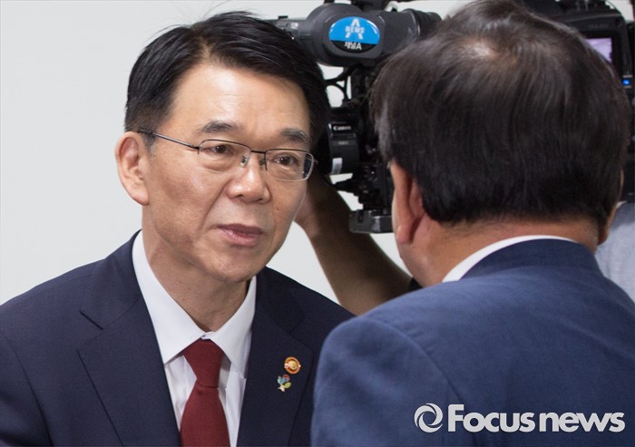 (서울=포커스뉴스) 24일 오후 서울 여의도 국회 의원회관에서 열린 여야 대구지역 의원들과 강호인 국토교통부 장관의 영남권 신공항 백지화 관련 면담에 참석한 강호인(왼쪽) 국토교통부 장관과 김부겸 더불어민주당 의원이 인사하고 있다.