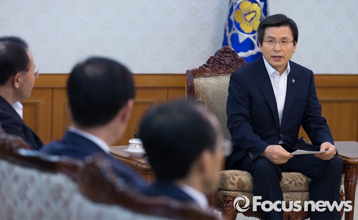 (서울=포커스뉴스) 황교안 국무총리와 대구지역 국회의원들이 24일 오후 서울 종로구 정부서울청사에서 영남권 신공항 백지화 관련 면담하고 있다.