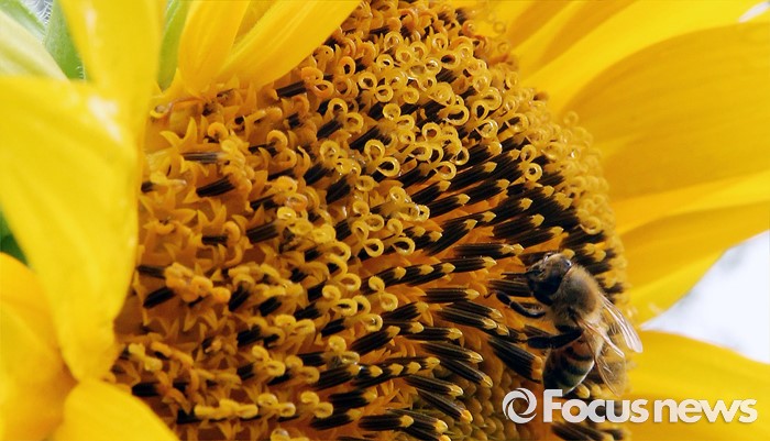 (대전=포커스뉴스) 장마가 소강상태를 보인 24일 오후 대전 유성구 국립대전현충원 보훈동산에 핀 해바라기에 하트모양이 보이고 있다.